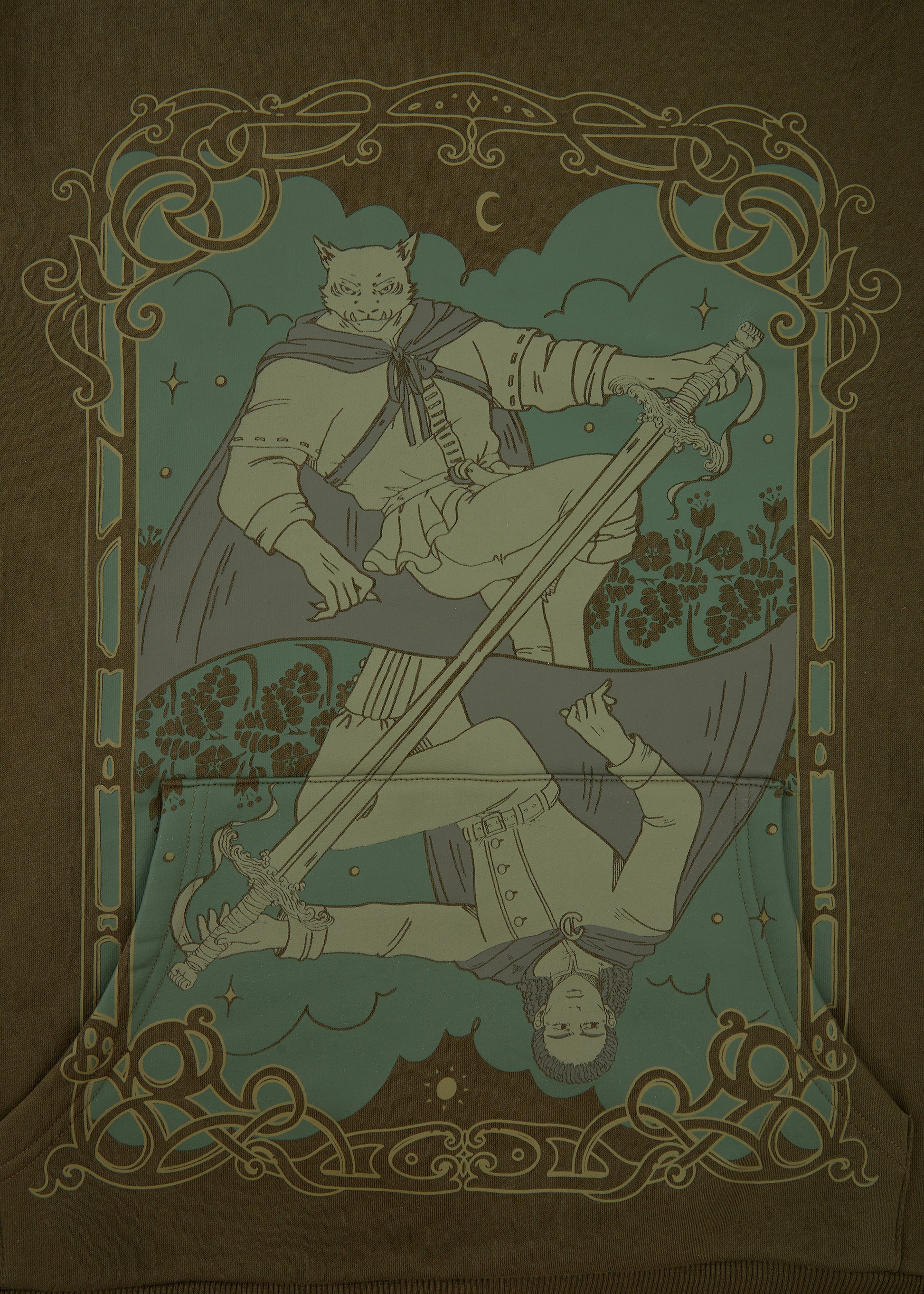 Become part of the legend in the Eursulon Hoodie. A bold over-the-seam graphic brings the hero to life, while the sleeve whispers the creed of knights: "At their best, a knight is… a warrior. One who prizes danger for themselves over the thought of danger for another." Adventure isn’t just out there, it’s woven into every thread.